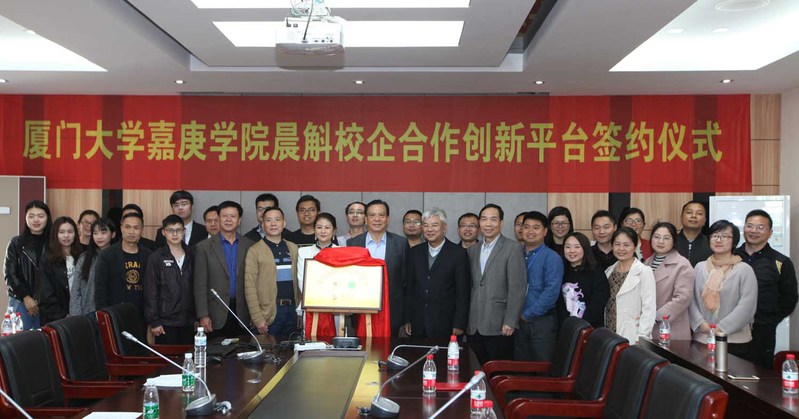 厦门大学嘉庚学院环境科学与工程学院于3月21日15点30分在生化C#416会议室举行林昌健教授的兼职教授聘任仪式和厦门大学嘉庚学院晨斛校企合作创新平台(以下简称平台)签约仪式。厦门大学嘉庚学院王瑞芳校长、环境科学与工程学院卢昌义院长、平台主任林昌健教授、厦门晨斛生物科技有限公司胡春莲董事长、南平商会黄成茂秘书长、邵武商会余义明会长、邵武商会肖正福副会长等领导和嘉宾应邀出席仪式。