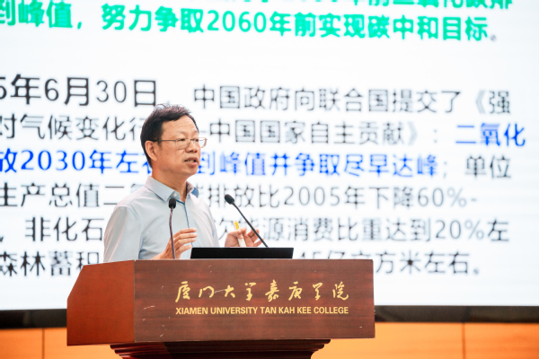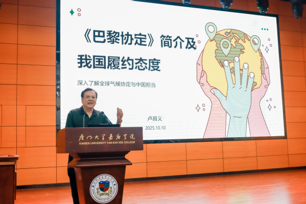 环境科学与工程学院院长卢昌义教授为师生补充介绍了《巴黎协定》的十年实施过程及我国的履约态度。他说,我国积极履行协定,提出“3060”双碳目标,制定多项政策推动绿色低碳发展,并在国际气候治理中发挥引领作用,宣布了2035年新一轮国家自主贡献目标。卢昌义表示,我校积极响应国家大政方针,设立了“3060”双碳战略协同创新专家工作站,环境学院设置了“资源环境科学”专业,为国家“双碳”战略的实施培养紧缺人才。