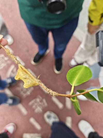 随后,“寻宝”任务开始。学生们散入林间滩涂,有人蹲下拍摄招潮蟹挥舞螯足,有人轻抚红海榄叶片的尖刺,有人拾起桐花树的胎生苗细细观察。“我尝了叶片,真是咸的!”“原来白骨壤的呼吸根像小烟囱!”——细语与惊叹声中,知识从文字变成了体验。