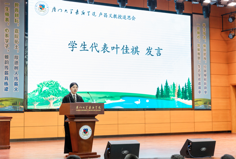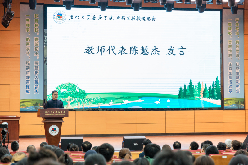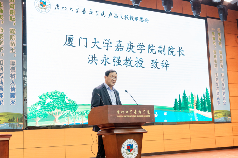 厦门大学嘉庚学院副院长洪永强教授代表学校致辞,他高度评价了卢昌义教授的一生,称其“以毕生精力投身教育,用奉献书写了教育的华章,是传承嘉庚精神的鲜活典范”。洪院长的致辞情真意切,让在场的每一个人都感受到了学校对卢教授的深切怀念与崇高敬意。