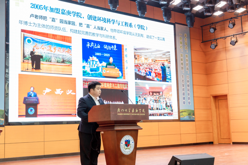 紧接着,环境学院党总支书记、院长助理周亮老师通过丰富的图片与视频资料,引用卢教授生前的“谆谆教诲”,详细回顾了卢昌义教授在嘉庚学院的教育生涯、学术成就与社会贡献。